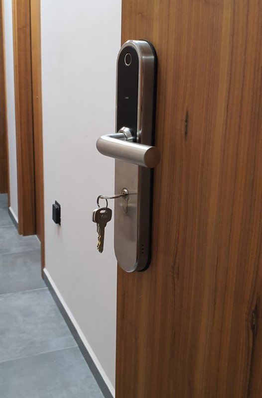 Решение за контрол на достъпа без къртене -полагане на кабели и вратата разпробита за секретна брава "седмица " 70 мм междуцентрие .