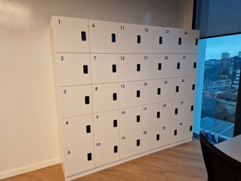 Проекта е реализиран с 60 броя електронна брава за шкафове с RFID карта за достъп 13.56 Mhz ASD 1703-IC. Шкафовете се използват за лични вещи на служители на IT компания - телефони , таблети и други електронни устройства т.н.