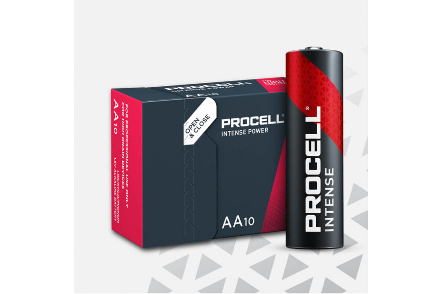Алкални батерии Duracell Procell Intense размер AA (LR6) за професионални приложения.