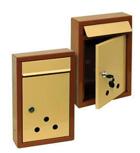 Вертикално разположена пощенска кутия, модел "EKO 10-01" за стенен монтаж. Размери: ширина/височина/дълбочина: 204/324/70 мм. Цветове по RAL: кафяво - 8003/ бежово - 1001.