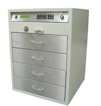 Сейфът е с четири чекмеджета, едно от които е депозитно.