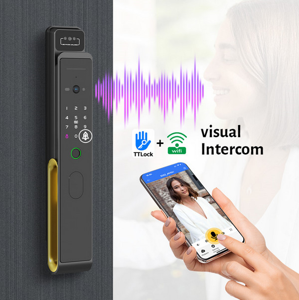 Напълно автоматизирана влагоустойчива Smart моторна брава с пръстов отпечатък, лицево разпознаване, мобилно приложение TTLOCK , Дистанционно управление , Чип/Карта , Код и WiFi свързаност.