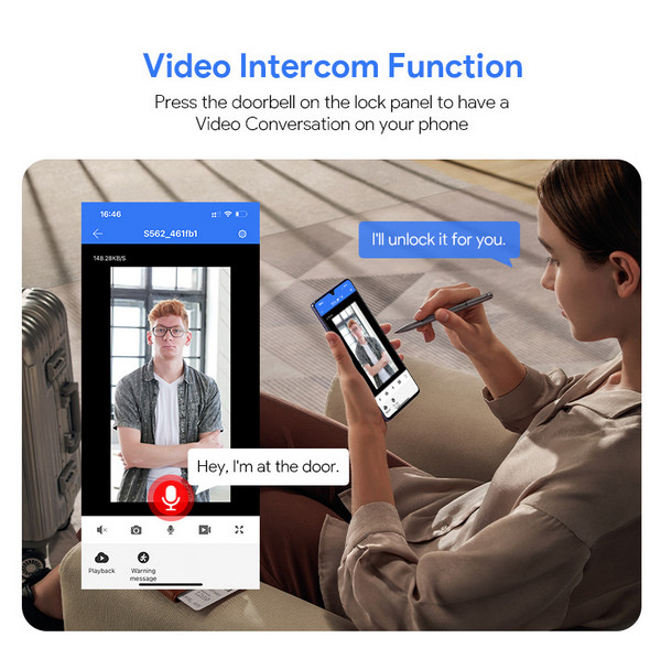 - Смарт отключване посредством / Лицево разпознаване / WiFi / Bluetooth приложение / Пръстов отпечатък / Парола / Карта или Чип / Дистанционно управление.