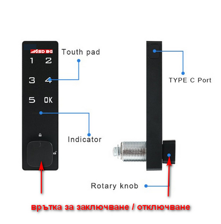 Електронната ключалка за шкаф с код ASD 2011 - Материал цам, черно полимерно покритие.