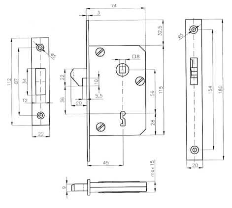 Брава вкопана METALPLAST 56/45,KJ/P-23 с ключ и падащ език, за плъзгащи врати. Разстояние от центъра на ключа до фронталната планка - 45mm. Разстояние от центъра на дръжката до центъра на ключа - 56 мм. Дължина на фронталната планка - 180 мм, ширина на фронталната планка - 20 мм